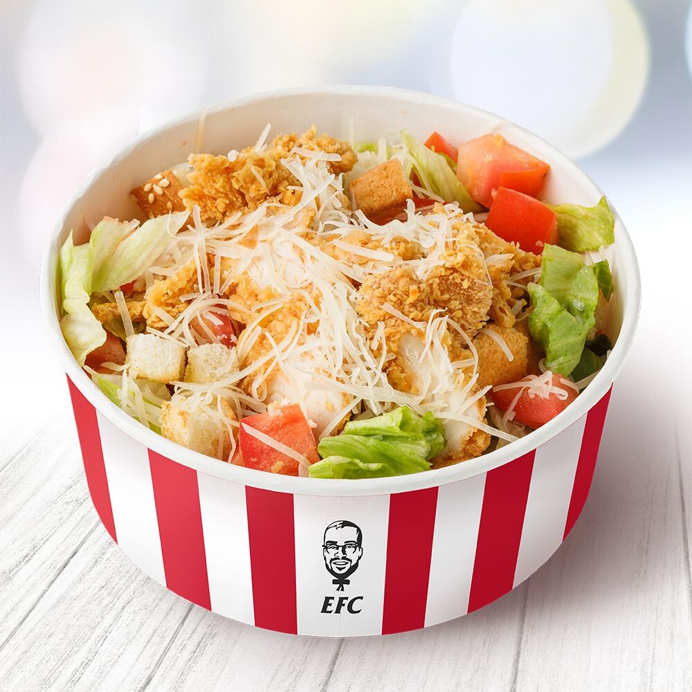 Айсберг, помидор, байтсы, сыр пармезан, сухарики, соус цезарь.