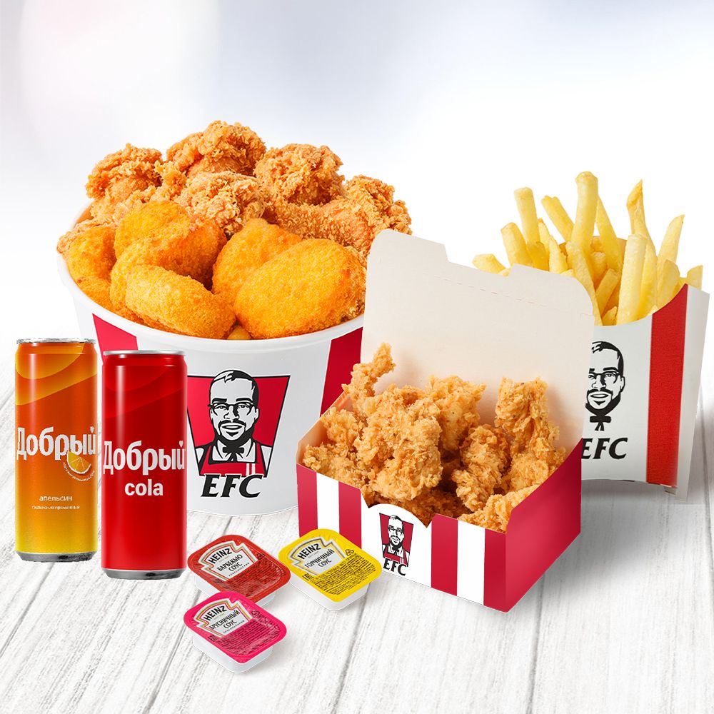 Баскет 11+11, байтсы средние, карт.фри/по-деревенски 120г на выбор ,2 напитка ж/б 0,33, 3 соуса на выбор.