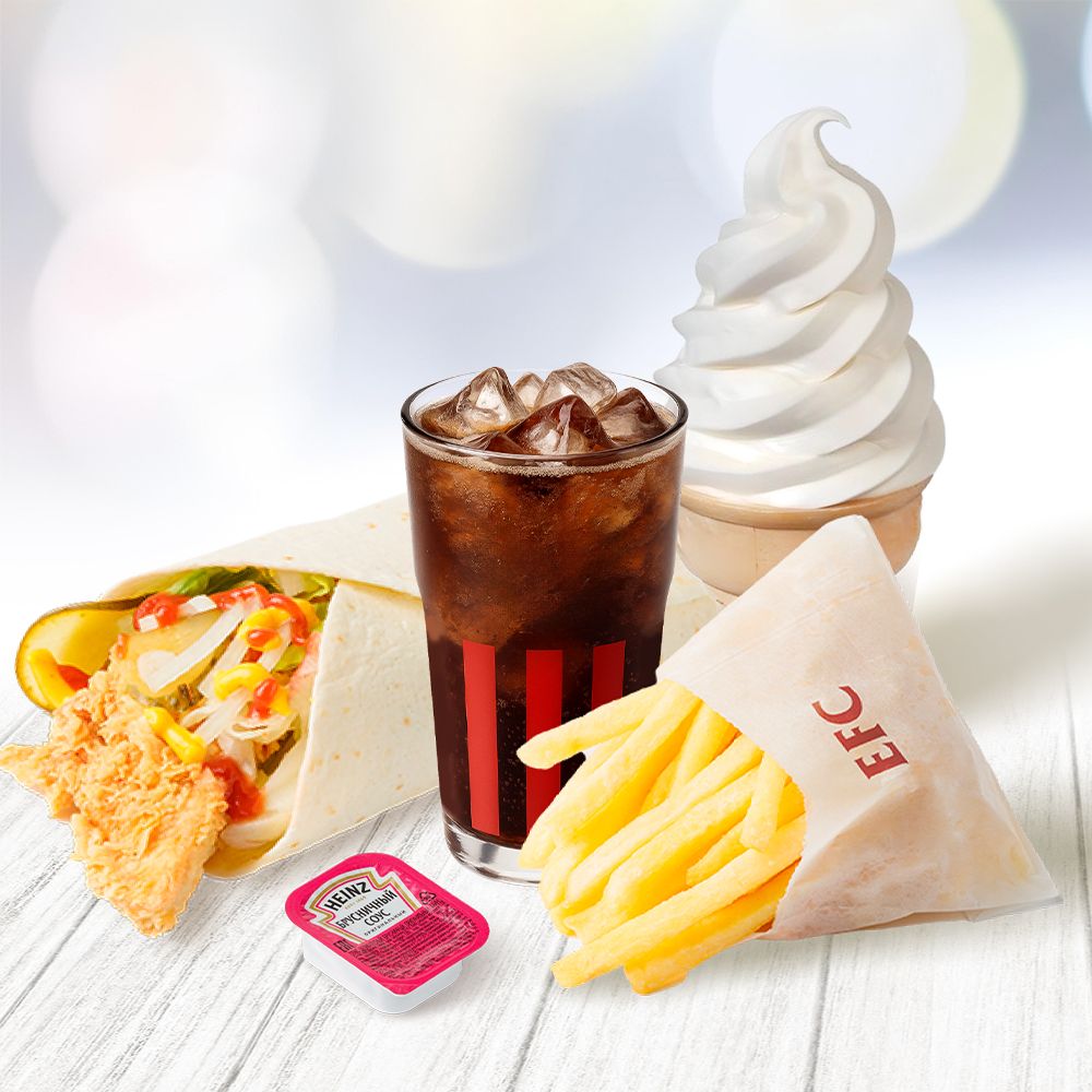Рингер джуниор, карт.фри 60г, напиток 0,33 ж/б на выбор, соус, пирожок с вишней